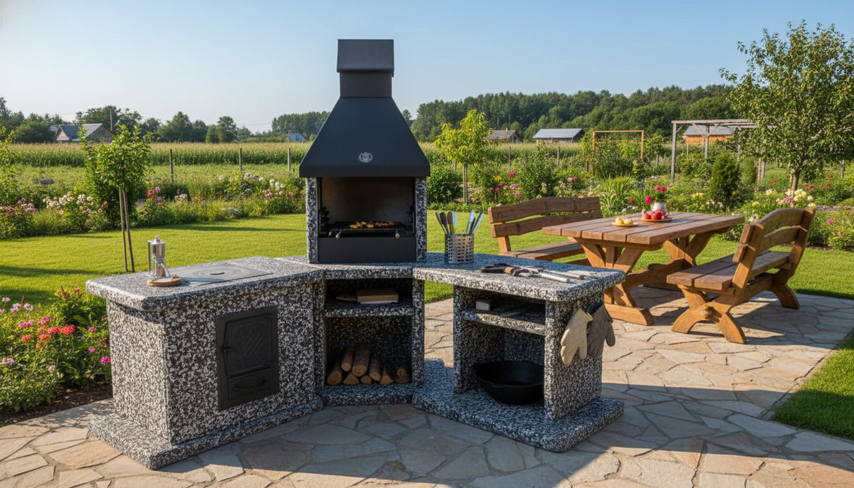 Уход минимален. После готовки достаточно убрать золу и протереть решетки щеткой. Каменные поверхности не впитывают запахи и жир — их чистят обычной водой. На зиму желательно накрыть комплекс чехлом, антикоррозийное покрытие держит ржавчину надежно, но дополнительная защита продлит срок службы ещё больше. Соблюдая эти несложные правила, комплекс сохраняет первоначальный вид и не требует ремонта годами.